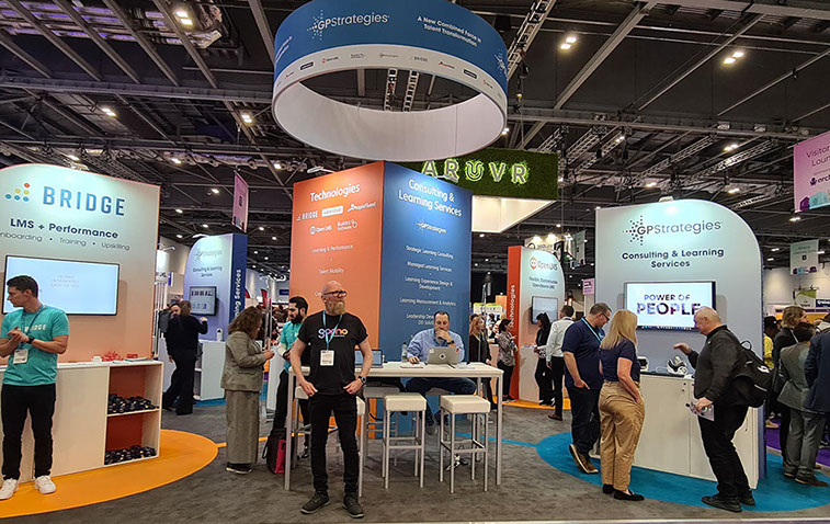 Learning Technologies Group plc, exhibiting at Learning Technologies show at Excel in 2023. Carly Atkinson Events Manager at LTG said “I just wanted to say thank you, the build and the output of the design was amazing. Working with you has been a great experience.”