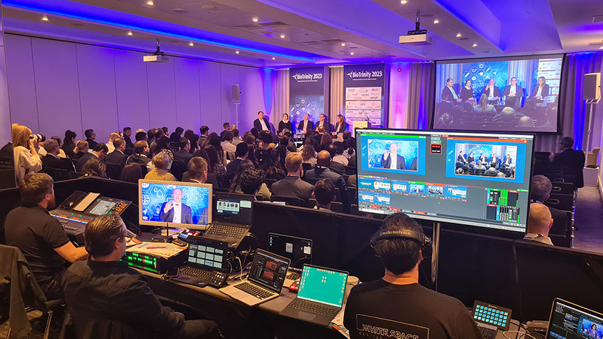 OBN - Bio Trinity Hybrid Conference / The conference brought together 200 live delegates (in a venue that would normally accommodate 500) and 400+ remote delegates viewing the live streams on the custom event platform.2