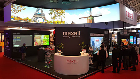 MAXELL exhibit at ISE held at the RAI in Amsterdam. These custom-built exhibition stands showcase the very best of Hitachi’s range of projectors. The stands were produced to a height of 6 meters and utilising the latest in tensile fabric construction methods, we were able to achieve a variety of different large format projection surfaces.